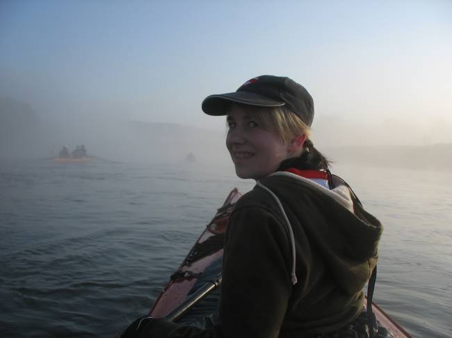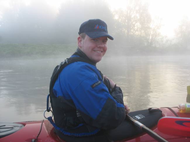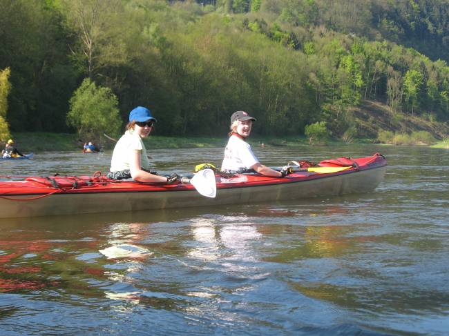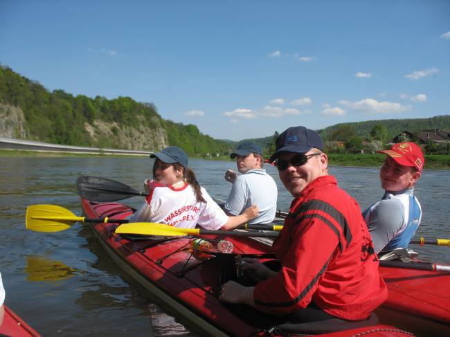Im Ziel. Nach 135 km paddeln freut sich jeder über dieses Schild